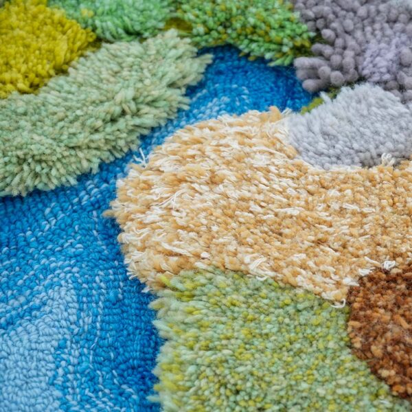 تُصمم خصيصًا وفق رؤية إبداعية – سجادات بأشكال حرة غير تقليدية تجسد مناظر البحيرات من منظور جوي بلمسة فنية مبتكرة.